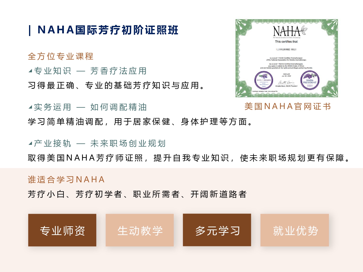 那你一定要認識來自美國的 👉 NAHA 國際芳療認證。